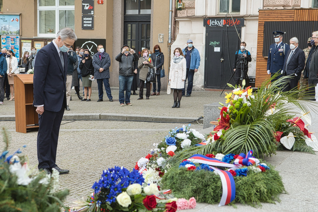Květiny k pomníku ve středu 6. května v podvečer položili také velvyslanec Spojených států amerických Stephen B. King a velvyslanec Belgie Grégoire Nicolas A. Cuvelier.