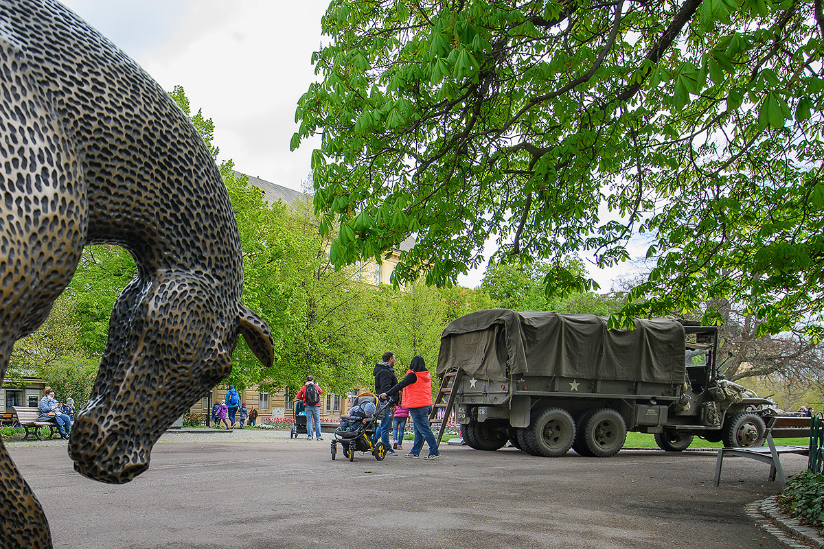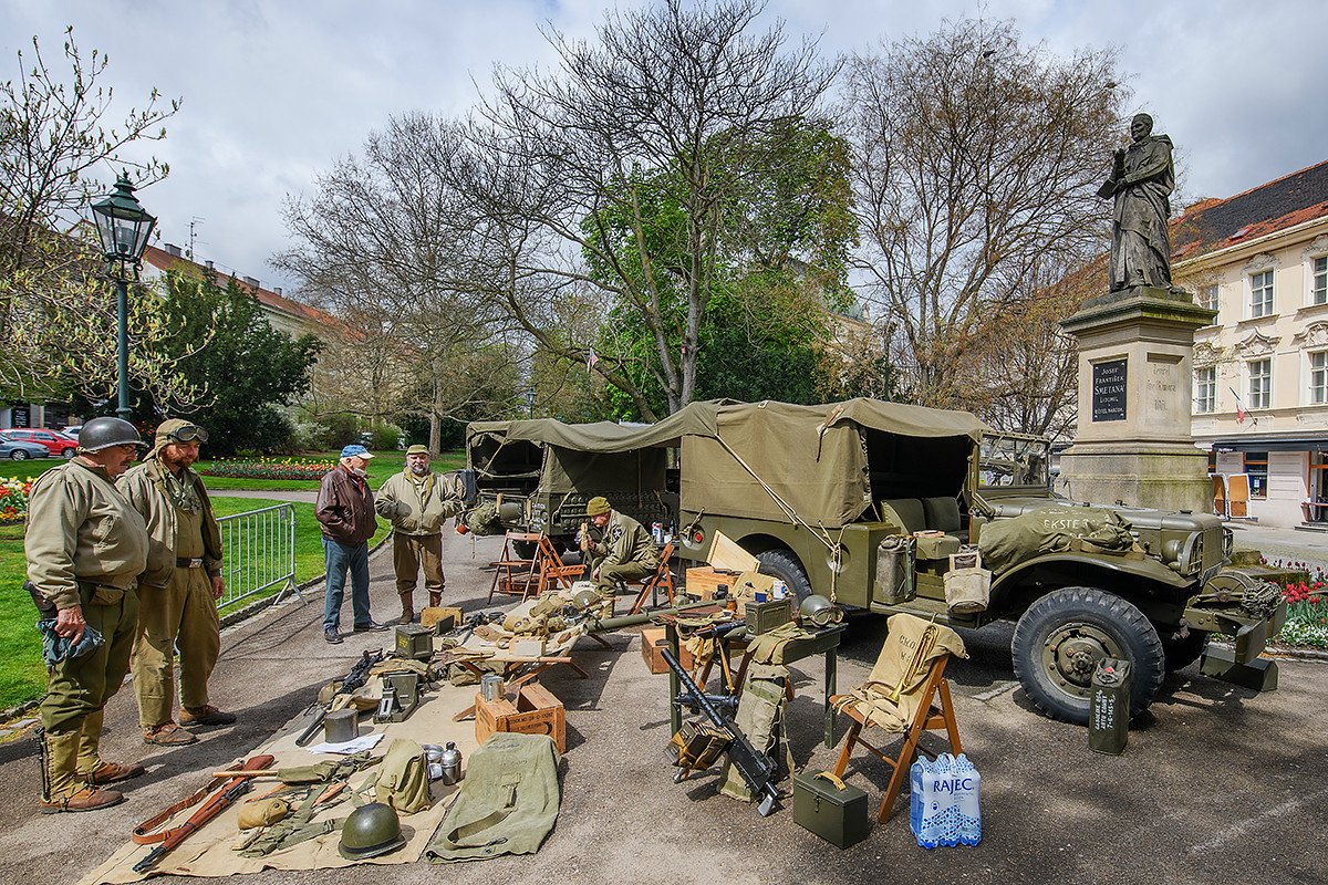 U Pekla si mohli lidé prohlédnout historickou vojensku techniku nebo ukázku výzbroje a výstroje současné americké armády v podání klubu JTF Raiders. Největší pozornosti se těšily na náměstí Republiky maketa legendární stíhačky Spitfire a v České republice jediný pojízdný tank Sherman M4, nejznámější americký tank ze druhé světové války. Třicetitunové vozidlo zaparkovalo přímo před vchodem do Měšťanské besedy. Kromě tanku byly v sadovém okruhu k vidění tahač Diamond T981, vyprošťovací jeřáb Ward LaFrance 1000, obrněné průzkumné vozidlo Halftrack M16 a M3, šest jeepů, nákladní automobil Dodge WC52, velitelský vůz Dodge WC 56 a motocykl Harley-Davidson. Kombinovaný oddíl představil techniku, kterou používala Československá samostatná obrněná brigáda.