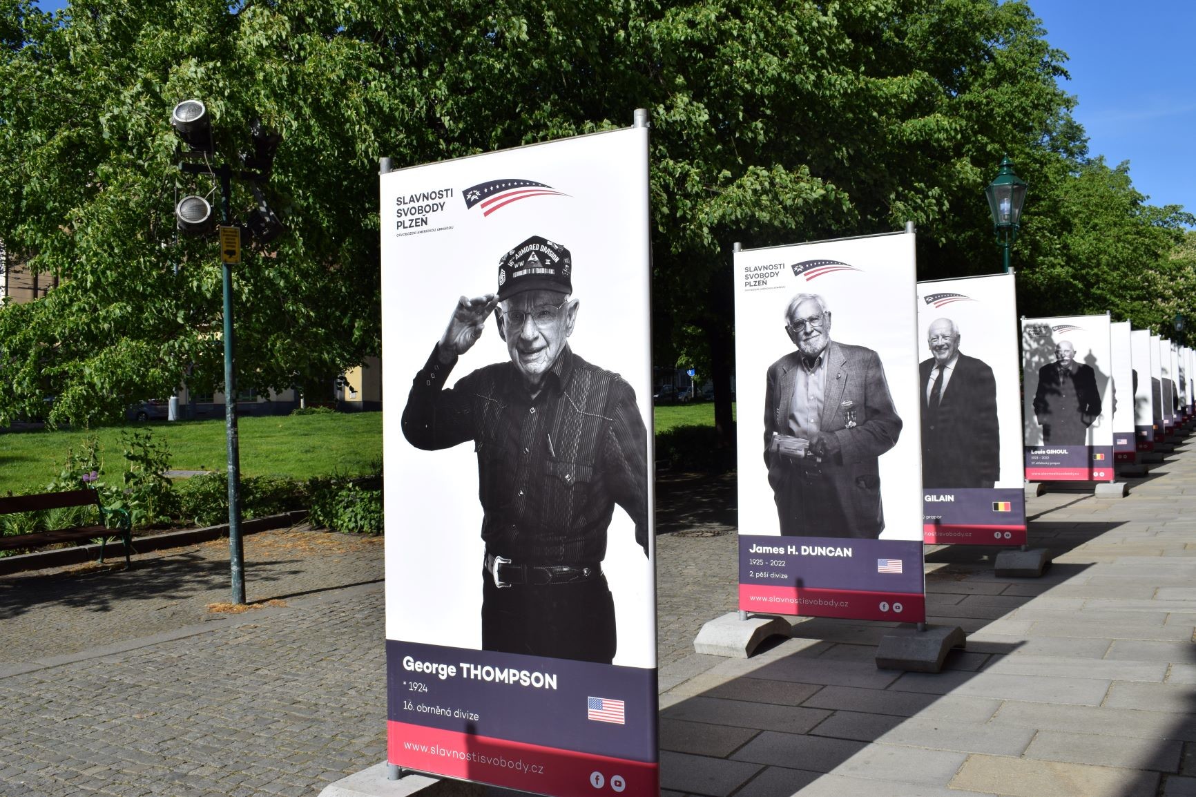 Portréty amerických a belgických veteránů v životní velikosti jsou umístěny v Kopeckého sadech podél budovy České spořitelny. Symbolicky upozorňují na jejich přítomnost, přestože už mnozí nejsou mezi námi.