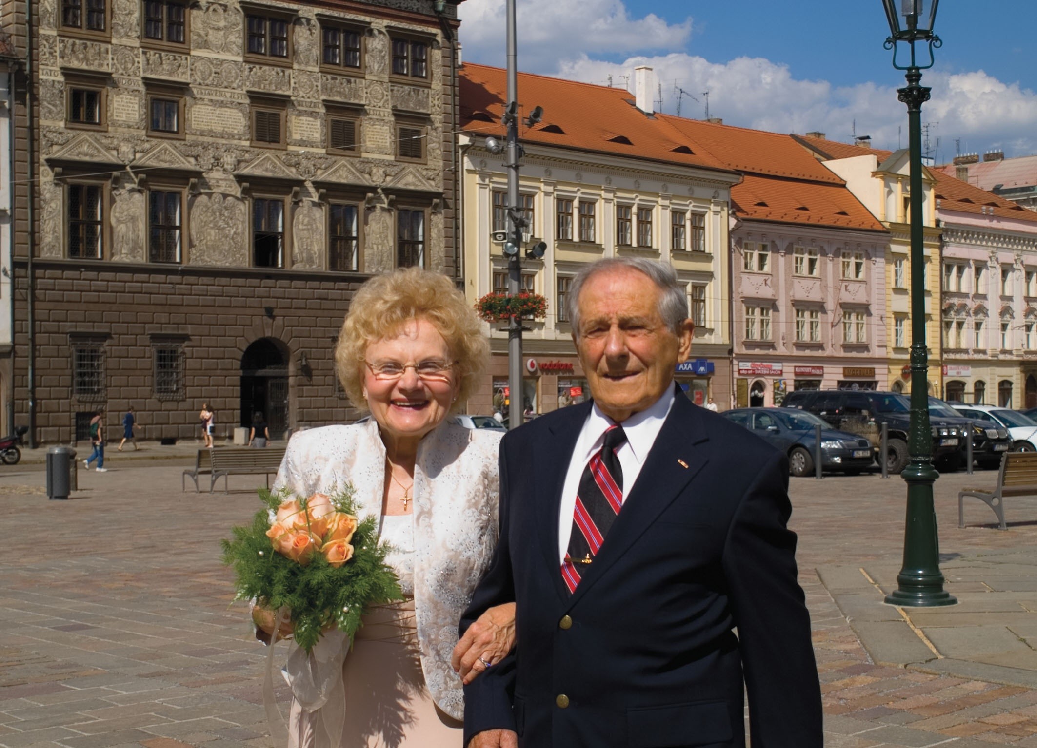 Marta’s first return visit to Czechoslovakia was nine years after their wedding. By then, she and Steve already had two children. After the Velvet Revolution in 1989, nothing could stop them from returning to Pilsen together. So, in 1998, a great wedding took place at St. Bartholomew’s cathedral in Pilsen – a repetition of the wedding that had taken place half a century earlier. Marta and Steve celebrated fifty years of their life together. The joining of the American and the Czech in matrimony – the love between two people from two different continents – these were the winners that day.